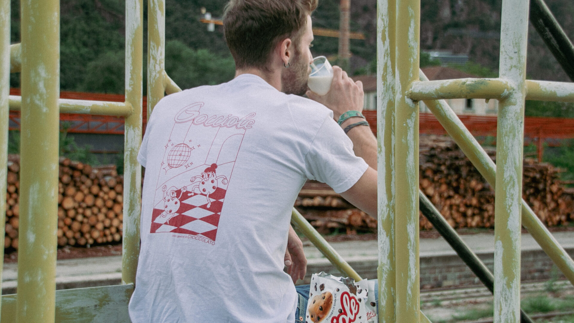 A gocciole party illustration printed on a shirt. “Le Gocciole” are female so i decided to make it an all girls disco.