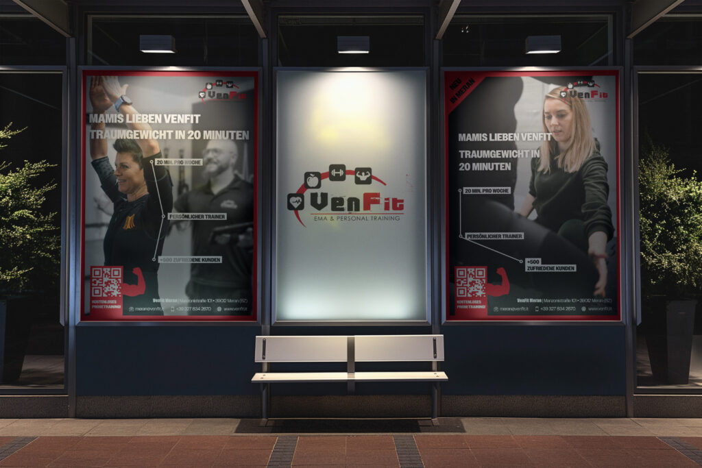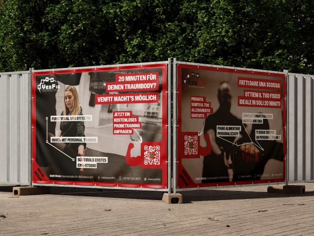 Banner and Postercampaign for Venfit, an EMA-studio (electrical muscle animation) with locations in Lana and Merano (South Tyrol, Italy).
